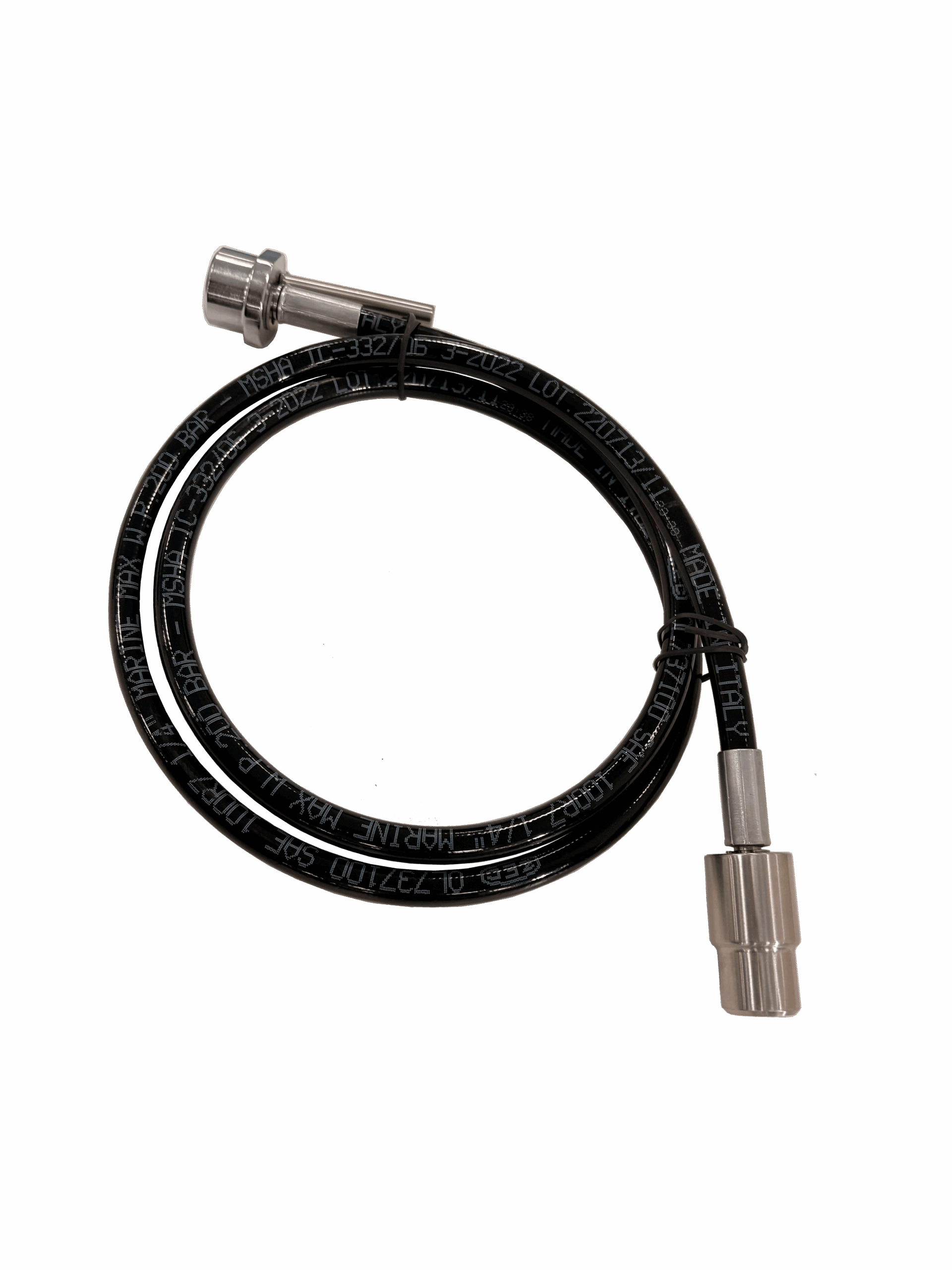 Mangueira de Engate rápido 5m, destinada a realizar a conexão do cilindro de CO2 à entrada do insuflador de CO2 utilizando apenas o esforço manual sem a necessidade de utilização de ferramentas.